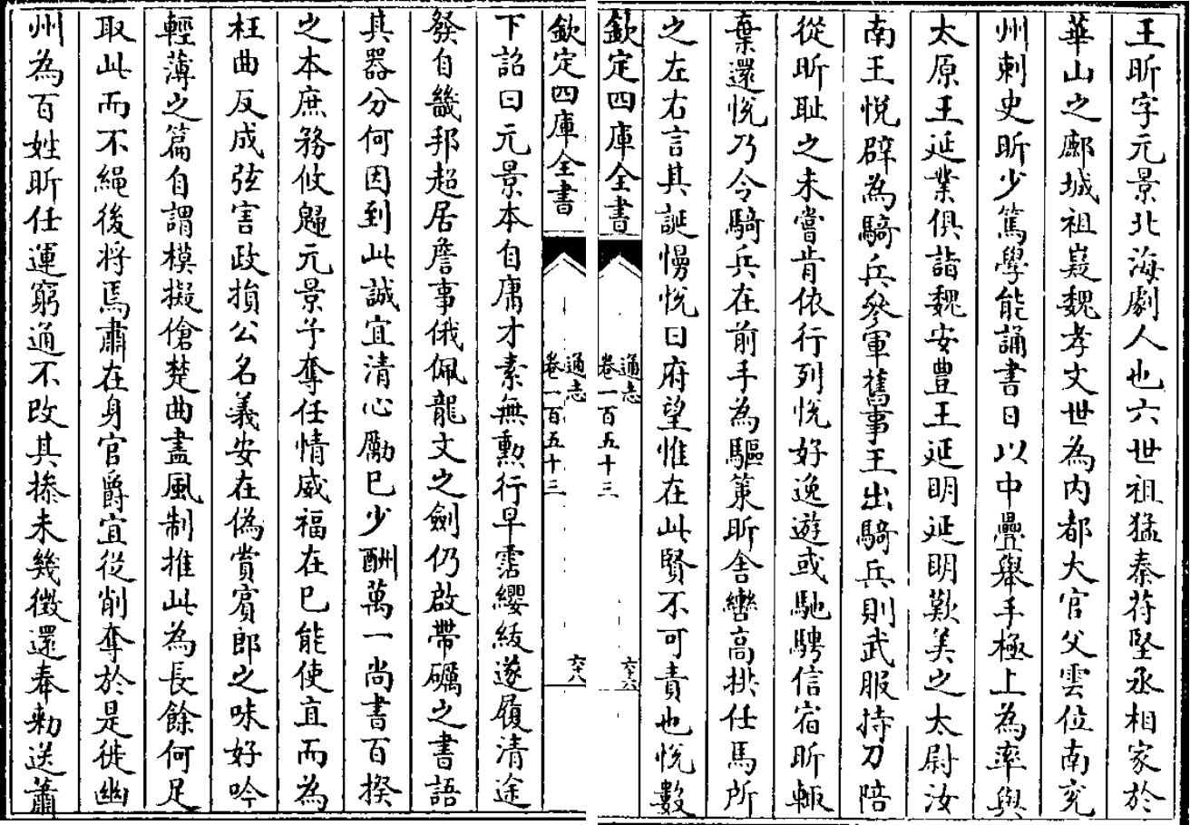 王昕,字元景,北海剧人。六世祖猛,秦苻坚丞相,家于华山之鄜城。父云,仕魏朝有名望。昕少笃学读书,太尉汝南王悦辟骑兵参军。