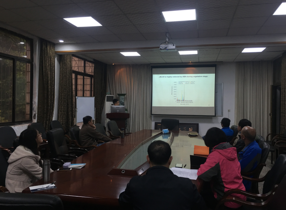 试讲结束后,王海华院长及其他与会老师围绕JMJ介导的脱落酸信号转导途径,JMJ30和JMJ32功能的冗余性以及免疫共沉淀实验等进行了深入的交流和讨论,现场气氛活跃,为组蛋白去甲基化在植物非生物逆境胁迫中的功能研究中提供了必要的分子及表型证据。
