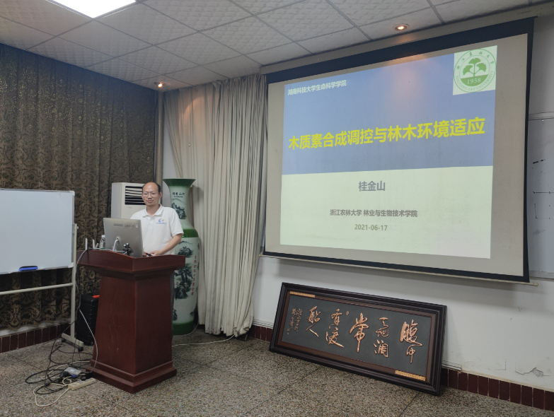 2021年6月17日学院邀请中国科学院分子植物科学卓越创新中心研究员、浙江农林大学教授、国家自然科学基金优秀青年基金获得者桂金山博士来永利讲学,并作题为“木质素合成调控与林木环境适应机制研究”的学术报告。永利部分教师与研究生参加了此次报告会,报告会由彭佳师博士主持。