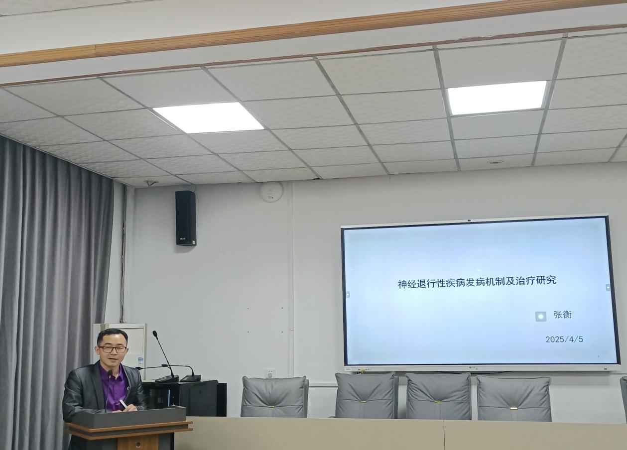 第二位主讲人是绍兴文理学院医学院张衡博士(副教授)以“神经退行性疾病发病机制及治疗研究”为题目进行了学术分享。