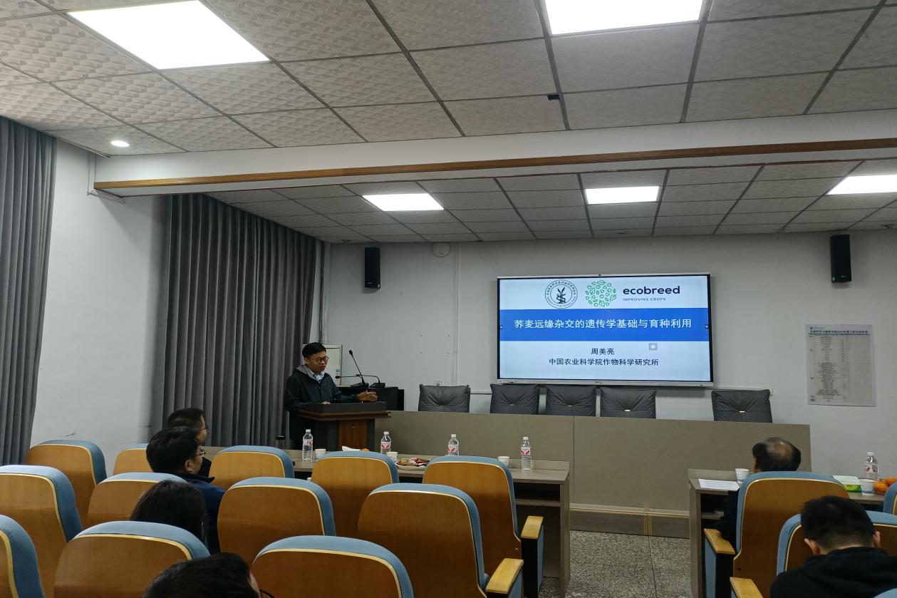 第一位主讲人是中国农业科学院作物科学研究所周美亮博士(研究员)。带来了题目为“荞麦远缘杂交的遗传学基础解析与育种利用”的精彩报告。