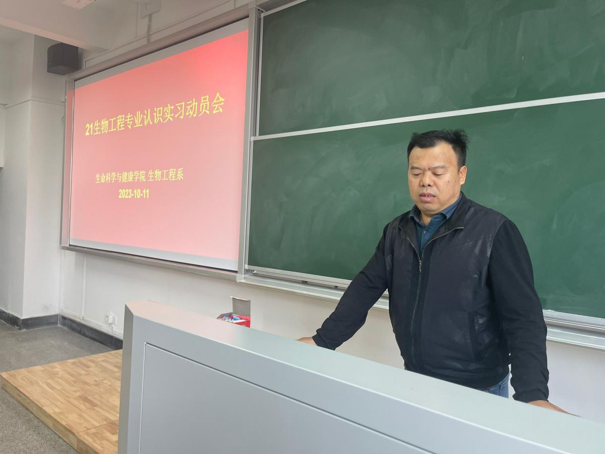 为全面促进2021级生物工程专业学生认识实习工作顺利进行,10月11日,永利集团3044在八教313教室举行2021级生物工程专业认识实习动员会。永利集团3044副院长梁飞扬,生物工程系系主任刘长军,实验室主任许爱清,2021级生物工程班主任张翼飞出席此次会议,2021级生物工程专业全体学生到场聆听。