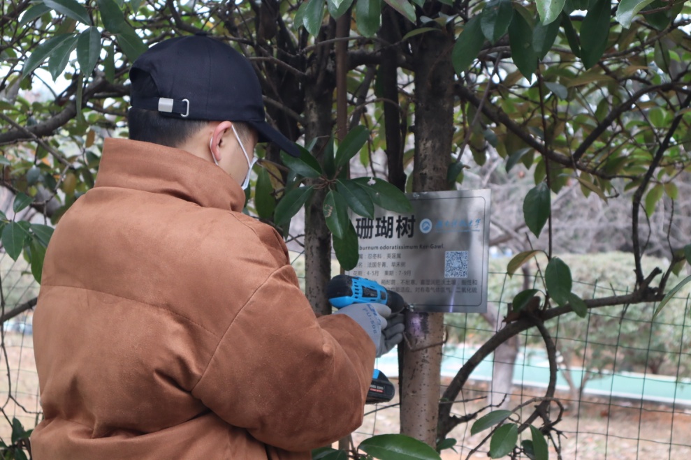 永利集团3044植物学团队在前期搜集资料和实地调查的基础上,为校园植物制作了富有特色的“身份证”——植物标识牌。该铭牌上包含植物的学名、别名、花果期、习性等信息,还附有二维码,通过微信扫描可以了解该种植物的详细信息如形态特征、植物价值、植物趣闻。