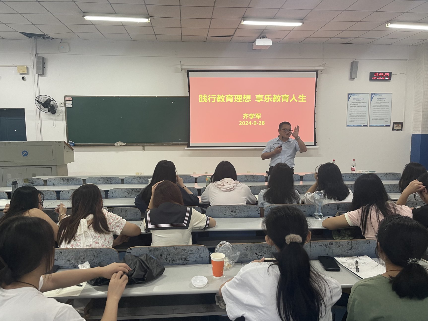9月28日上午,湖南省第十四届人大代表、湘潭县一中党委书记、湖南省特级教师、全国五一劳动奖章获得者齐学军老师莅临永利讲学,带来了题为“践行教育理想,享乐教育人生”的精彩讲座。讲座由副院长刘长军主持,全院师生代表共200余人到场聆听。