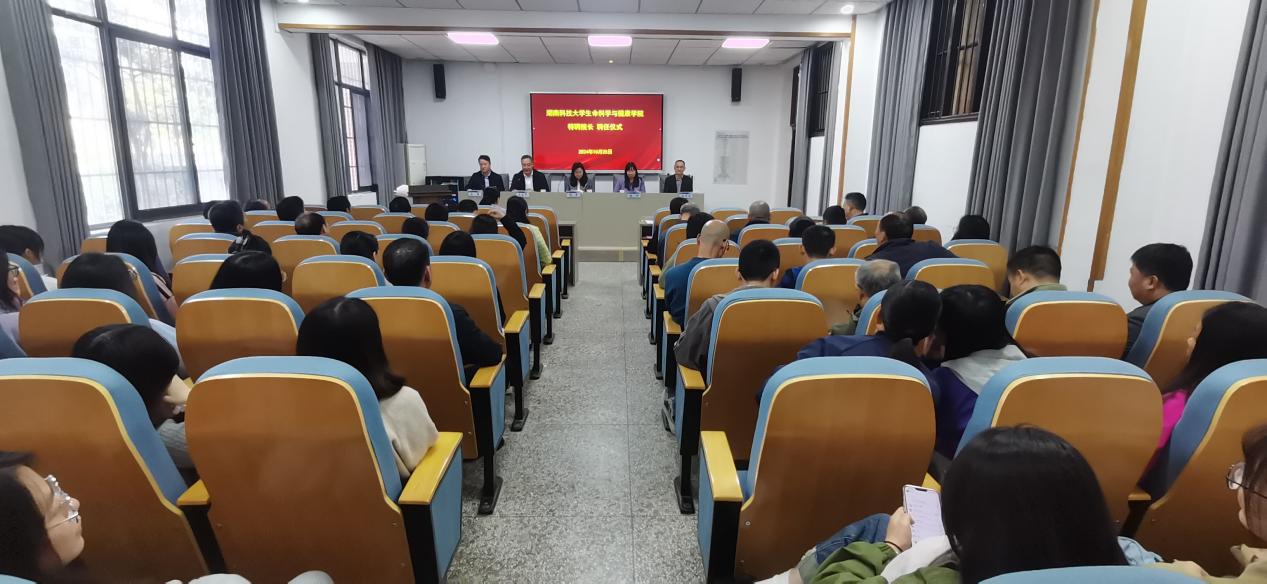 10月25日上午,学院在生物楼105会议室举行特聘院长聘任仪式。校党委副书记谢慧,组织部常务副部长、党校常务副校长、机关党委书记张琳,人事处处长、党委教师工作部部长、人才办主任吴建军以及全体教职工参加,吴建军同志主持仪式。