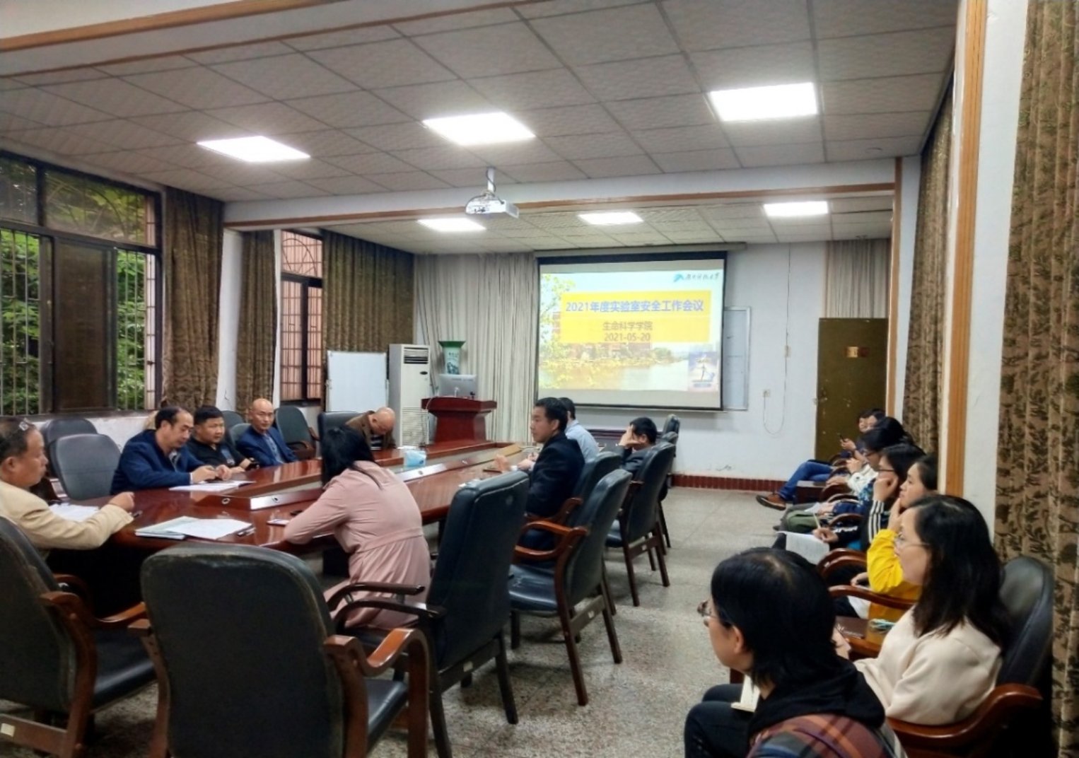 5月20日下午,学院召开2021年度实验室安全工作会议,会议由副院长孙远东教授主持,院长王海华教授、院党委书记严明理教授等院领导、实验教学中心人员、重点实验室安全管理人员以及全体研究生导师出席会议。