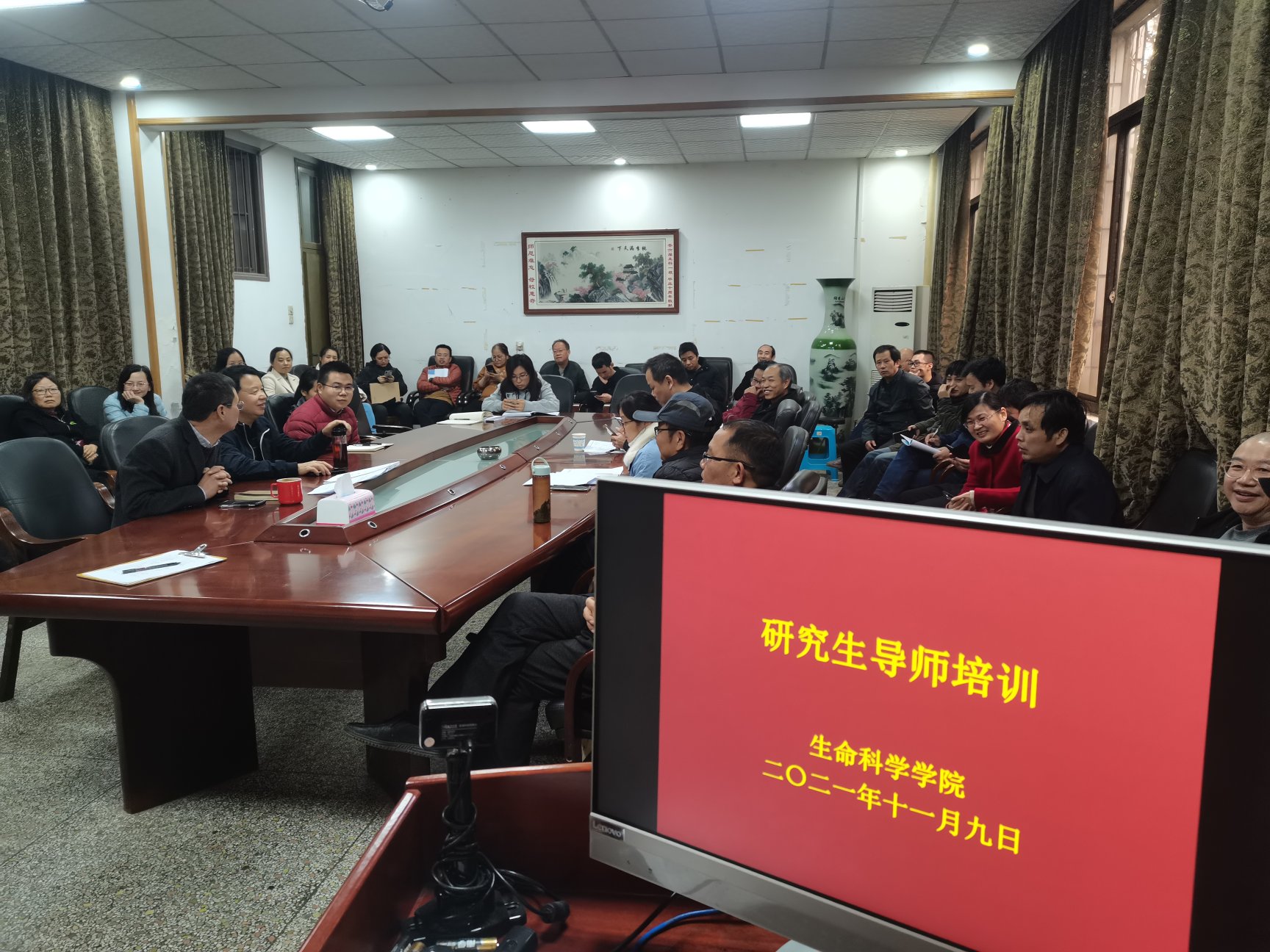 11月9日下午,永利在生科楼105会议室举行2021年硕士研究生导师培训会议。院领导、学术委员会、学位授予分委会全体成员、及所有研究生导师、研究生管理人员参加培训,会议由学院党委书记王海华教授主持。